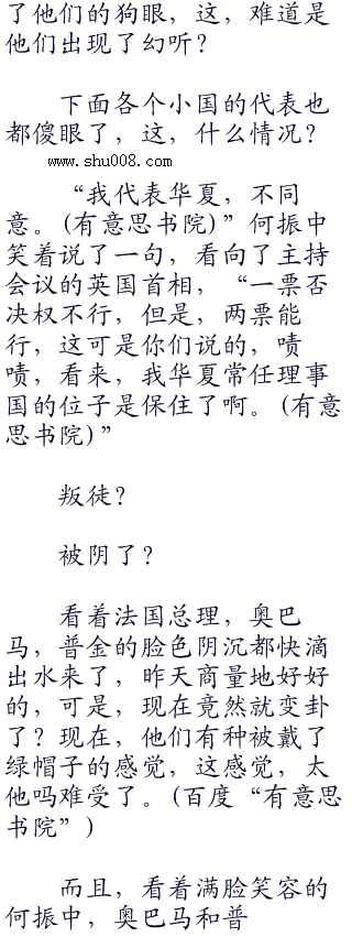 看了一眼奥巴马,普金等人,何振中的嘴角微微上翘,勾起了一抹莫名的冷笑,淡淡地说道:“那么,我华夏行使一票否决权,否定这个提议。”