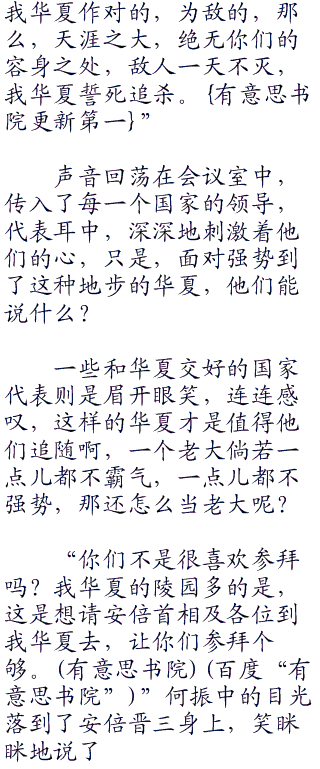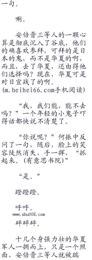 看着台上傲然而立,满脸冷色的何振中,安倍晋三牙齿都快咬碎了,他知道,华夏和日本之间不会有什么缓和的余地的,如果可以,他宁愿选择投降,跪地求饶,可是,华夏人会给他机会吗?