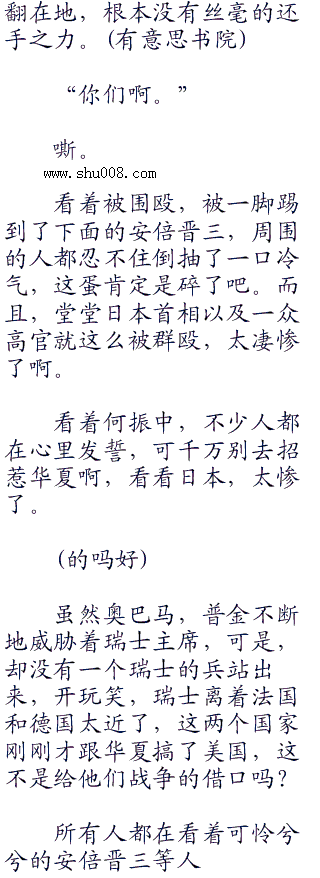 看着何振中看向自己,瑞士主席还能说什么,满脸的苦笑,什么狗屁中立国之类的,在二战的时候,中立国还不是被人侵占了那么多。这个世界啊,说穿了,依然是谁的拳头大,谁说了算啊。