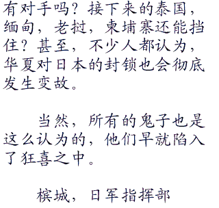 形势已经被彻底反转,被曾经的手下败将压着打,像是一条狗一样被撵着打,最后不得不龟缩在槟城,这些日本鬼子这段时间的憋屈可想而知了。