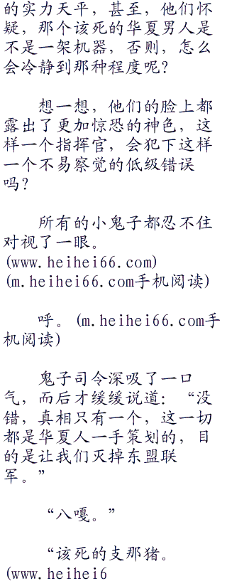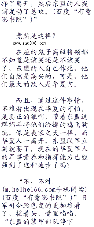 “嗨。”那个鬼子应了一声,缓缓说道:“司令,在东盟联军的尸体中,没有找到一具华夏人的尸体。在审问了一些东盟高级军官之后,他们说,所有安插在东盟联军之中的华夏军官全都在开战前几小时就撤离了。”
