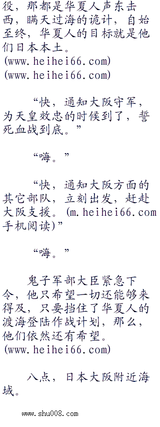 “报,报告。”闯进来的鬼子说话都不利索了,满脸的惊恐之色,声音中也充满了恐惧之意,“大阪附近海域,发现华夏人舰队。”
