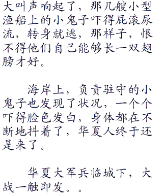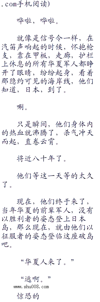 “密密麻麻一片,全是船,看不到尽头啊,很多都是渔船,上面都站满了那些该死的华夏人。”那个鬼子的声音都带着哭泣之色,那场面太可怕了。