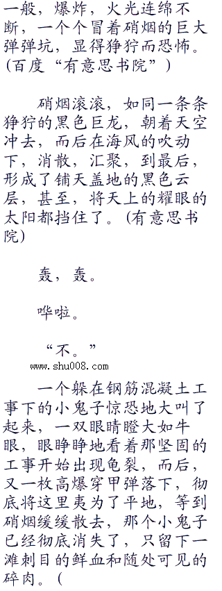 鬼子的阵地被爆炸撕裂的七零八落,一个个倒霉蛋在爆炸中被炸成了一堆破烂的血肉,甚至,连惨叫声都来不及发出,就去见他们的天照大神了。