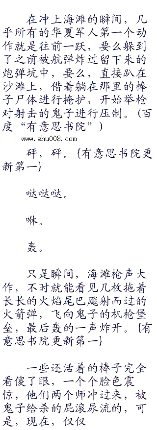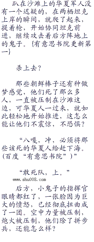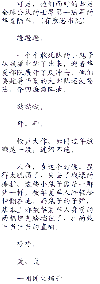 当快要靠近的海滩的时候,登陆舰停下了,只听见哐当,哐当的声音响起,厚重的钢板阀门打开,一个个华夏军人鱼贯而出,提着枪,弓着腰,呈散兵冲锋阵型,从海水中趟过,快速朝着岸上冲击而去。