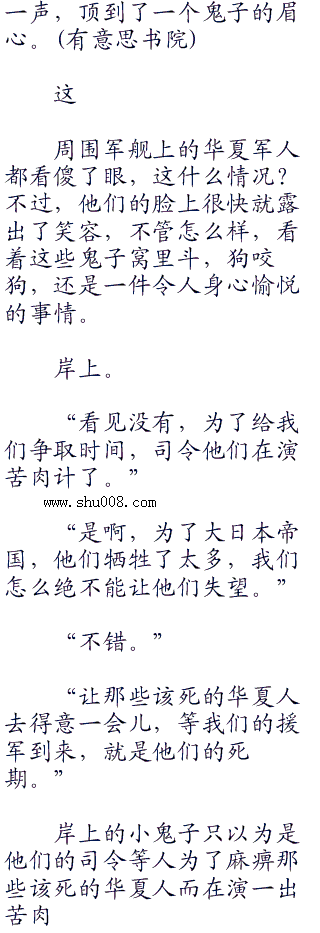 船上的小鬼子脸上都布满了屈辱之色,如果不是为了给大部队争取时间,他们怎么会忍受这样的屈辱?竟然要去仰望这些该死的华夏人。