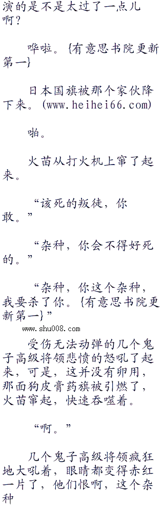 岸上的鬼子一个个看的是目眦欲裂,脸上布满了感动之色,一些感情丰富的家伙更是已经流下了泪水,为了他们,为了大日本帝国,竟然真的开枪了,上演了一出血淋淋的苦肉计。