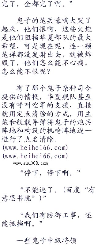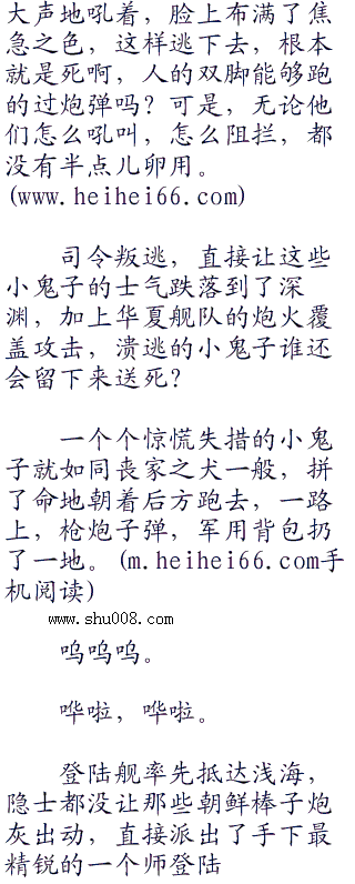 接着,一股惊慌恐惧的气息在整个鬼子的海防阵地上快速蔓延着,之前才激发出来的士气,什么血战到底,什么和华夏人同归于尽立刻就消散了,吗的,连司令都叛逃了,他们还拼命?拼毛的命啊。。 ww w ..co m