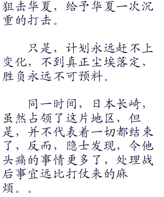 长崎守备军司令叛逃,长崎方向所有部队被击溃,广袤的西部地区三分之一的领土,大量的战略物资均轻松落入华夏人的掌控之中。
