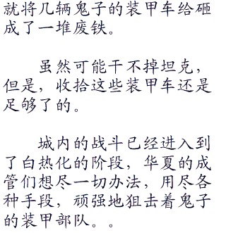 很快,命令就下达了下去,鬼子的装甲部队开始进城,朝着华夏成管杀去。