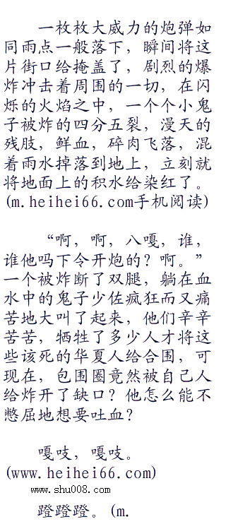 一连窜的爆炸响起,就如同过年放鞭炮一眼,连绵不绝,十几个正在追击华夏成管的小鬼子连惨叫声都没发出就被炸成了几段,残肢碎肉落的满地都是,血水染红了雨水,不断地流动着。