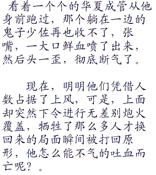 几个差点儿就被追上的成管停下脚步,松了口气,吗的,差点儿就被堵死了,还好,鬼子
