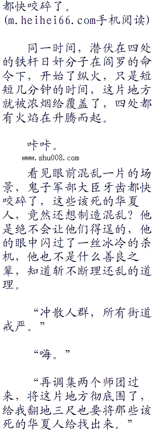“**,屡战屡败,丧权辱国,欺瞒民众,今天,必须给我们一个交代。”已经换上了一声鬼子武士服的哈雷躲在鬼子人群中,不断地大吼着,刺激着周围鬼子的情绪。