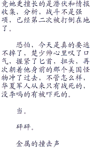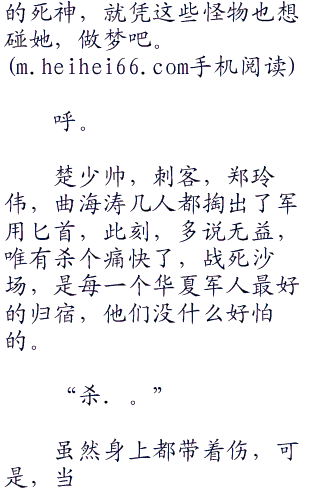 安然,楚少帅,刺客几人也不再隐藏,钻了出来,每个人的脸上都带着一抹冷色,虽然很可能无法活着离开这里了,但是,有什么好怕的呢?他们都是骄傲的华夏特种兵,还会怕了这些美国佬不成?