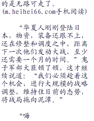 何振中抬头,嘴角微微上翘,勾起了一抹莫名地冷笑之色,看着鬼子军部大臣,淡淡地说道:“首先,日本穷的叮当响,拿什么来赔偿我华夏?第二,那几个破岛加起来能有多大点儿?更何况,九州岛可是在大和共和国的控制下,根本不在你们的手中。()而且,这些条件,大和共和国也可以给华夏,为什么我要跟你们和谈呢?”
