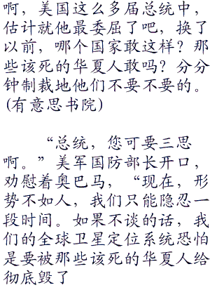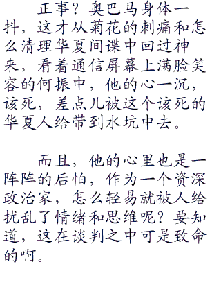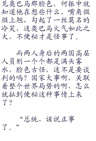 “既然他们不想谈,那就别谈了。”奥巴马气喘吁吁地,眼睛都发红了,他的心里屈辱