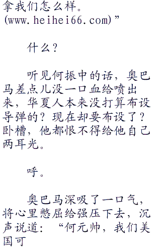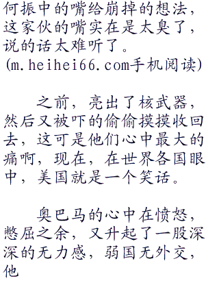 奥巴马很想硬气地甩一句,打就打,谁怕谁啊,可是,话到了嘴边还是被他生生给吞了下去,没办法,现在美国科技,武器装备被华夏全面碾压,他真的没那个胆子啊。