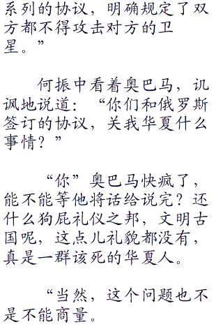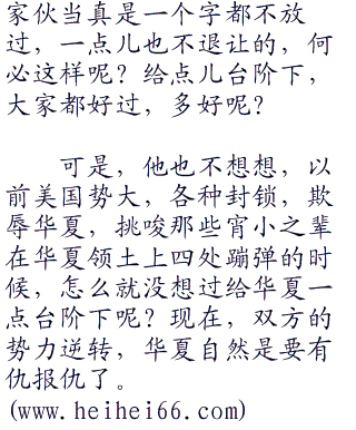 然后?奥巴马立刻恨的咬牙切齿的,这家伙简直不按谈判套路来啊,然后他们能怎么样?如果打的过华夏,他们早就动手了,还谈个屁啊。