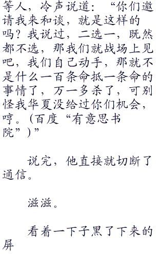 “这个没得谈。”马八奥恼怒地盯着何振中,气的牙齿都快咬碎了,如果可以,他很想从屏幕爬进去,然后一把活活掐死何振中,太他吗欺负人了,成天就惦记着他们米国的领土,靠。