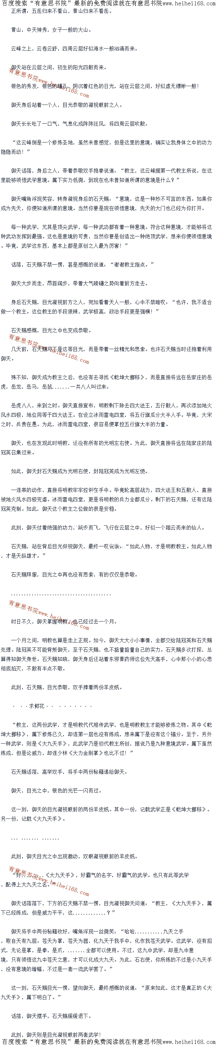 这一刻,御天的目光凝视眼前的两份羊皮纸。其中一份,记载武学正是《乾坤大挪移》。另一份,记载《大九天手》。