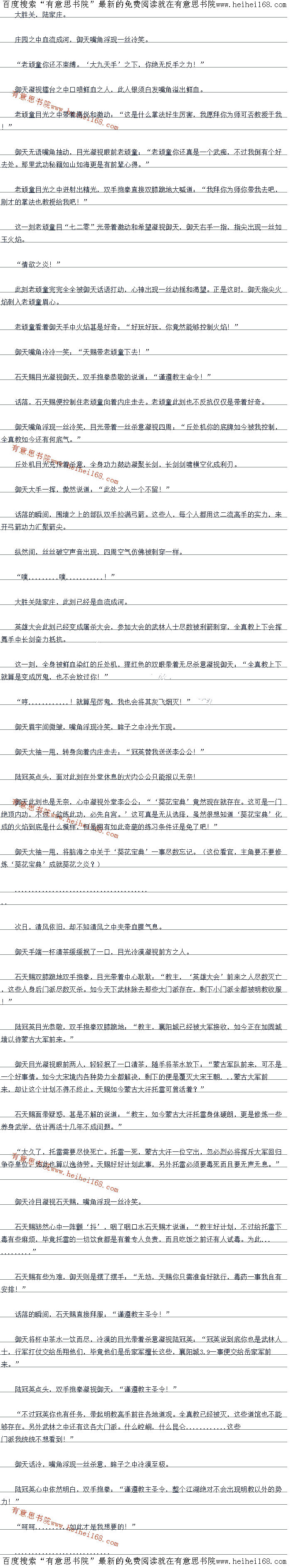 御天双眼凝望四周景色,嘴角含着一丝冷笑:“天下之毒,最隐蔽之毒莫过于情花之毒。情花红艳,所中之毒更是没有药物控制。无色无味更是带着一丝情‘欲’在其中。人拥有七情六欲,就算是蒙古大汗也不能够免俗。情花红艳似火,必将在绿色草原之上风行。想来这情花之毒,必将成为毁灭蒙古的存在!”