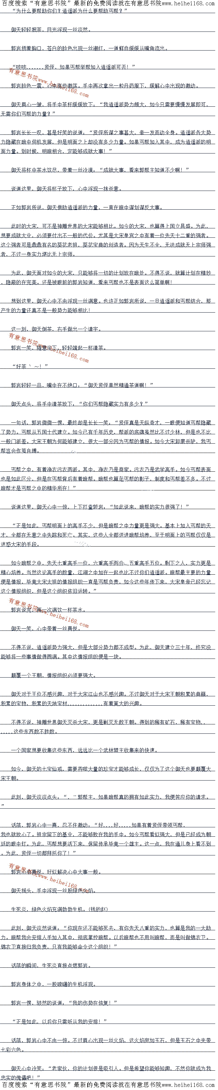 郭岩之死,你是假死。想要掌控暗帮,想要朝廷放过丐帮。只有丐帮成为二流势力才行。郭岩被六扇门击伤,本来就是活不了多场时间。为此,御天便让郭岩假死,然后暗中掌握暗帮。至于明面上的丐帮,在布置一系列的计划,将丐帮之中实力比较强大之人接引到丐帮。另外丐帮还有金如峰这个棋子,只要金如峰一闹,毕竟让丐帮元气大损。