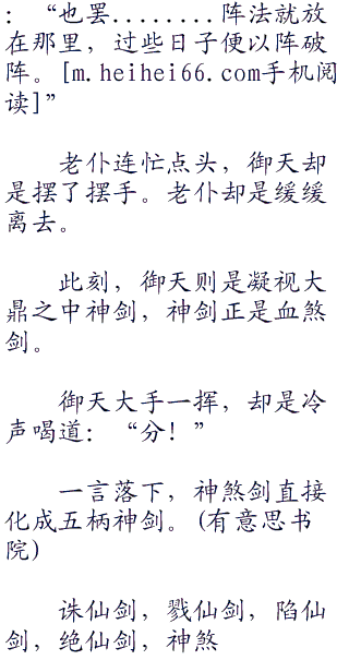 老仆有些心惊的凝视神剑,这神剑散发无尽的煞气,真是一把令人恐怖的神兵。