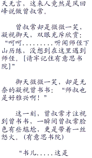 御天也是一愣,凝视这个少年却是有些诧异。这少年竟然是曾书书,也就是风回峰首座曾叔常之子。