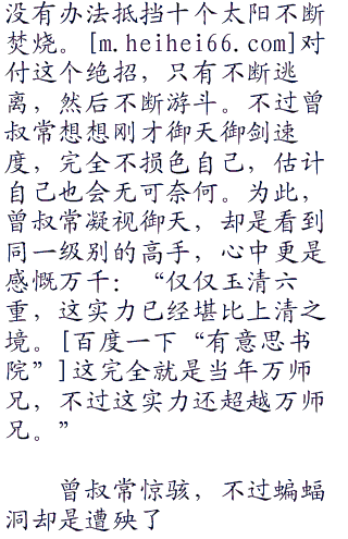 曾叔常紧随其后,面容有些凝重:“好霸道的火焰,这火焰之中充斥辉煌大气,更是有种至刚至阳的气息。面对这火焰,好似看到一**日。这就是御天师侄创造的仙法吗?17”