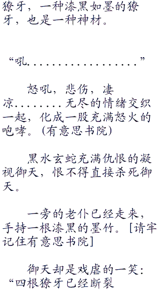 正所谓一物降一物,也许道玄面对黑水玄蛇也是无奈,不过黑水玄蛇面对御天却是无奈。
