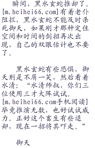 此刻,黑水玄蛇悲催的发现自己不能移动,更是不能发出声音,只能看着御天挥剑前来。