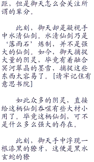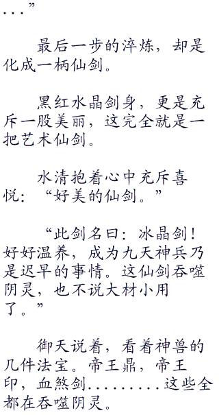 水清坐在一旁,却是有些无奈的凝视御天。就在刚才,几人分开捕捉阴灵,将其炼入仙剑之中的时候。