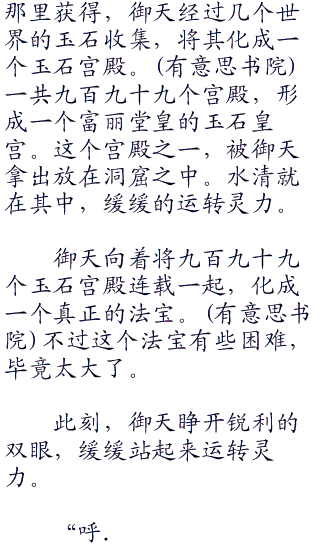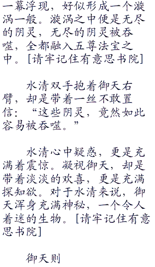 此刻,水清凝视御天充满着爱意,也许刚才被御天强吻,心中已经装下了御天。