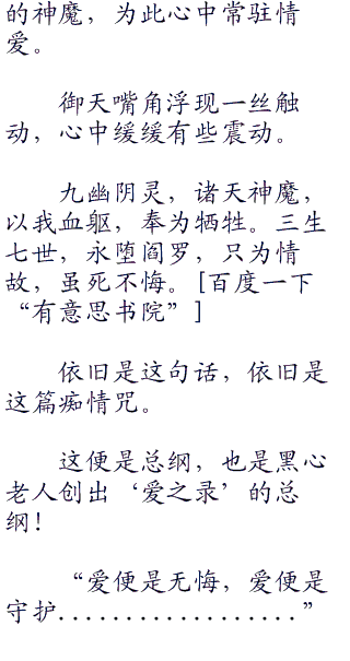 御天长长一叹,缓缓收回心神。心中也是知晓,诛仙世界最强大的力量,便是这个所谓的痴情咒。爱的力量,才是诛仙世界最为强横的力量。