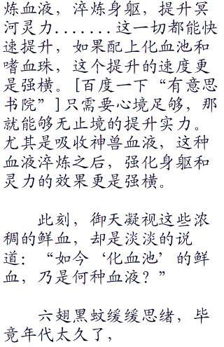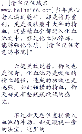 ‘化血池’乃是何物,这一点御天也不知晓,不过看六翅黑蚊如此兴奋,想来是一个强横极致的法宝。
