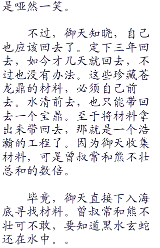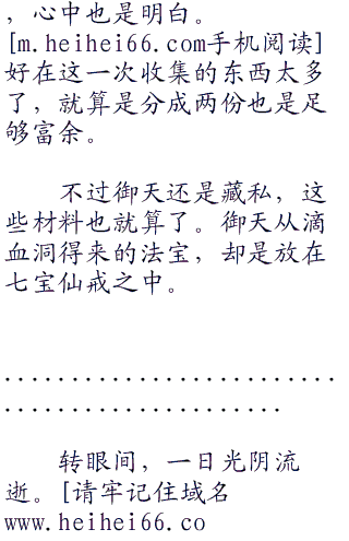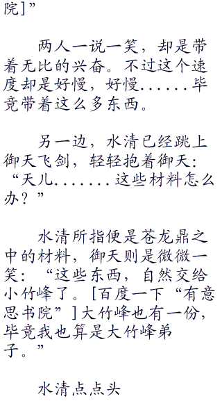 水清没有收集,御天则是收集无数。苍龙鼎第一个特点便是储存空间,老仆收集无数的材料,全都放在苍龙鼎之中。毕竟御天身后还有这一个小竹峰和大竹峰,这些材料不怎么珍贵,但是也算是不错。