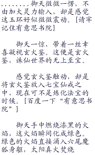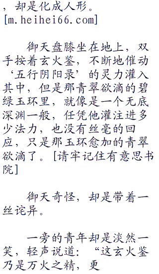 时间流逝,御天却是凝视手中玄火鉴,这玄火鉴落到御天手中,却是没有半丝反应。御天随意的输送一些发力,但是这一些发力却是宛如泥牛入海一般,渺无消息,无影无踪.....