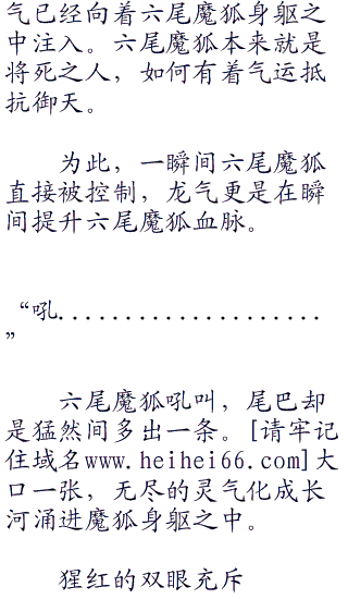 六尾魔狐震撼,心中更是浮现一股激动。回光返照的瞬间,谁也不想去死,如今有着生存的希望,六尾魔狐自然激动!