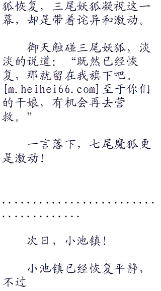 御天无言,凝视三尾妖狐,却是轻轻的抚摸击败的毛发,更是时不时送入一颗丹药。