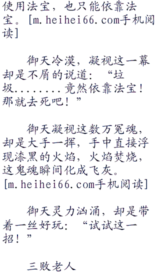 御天冷漠一笑,猩红的眸子凝视三败老人。这是一种什么目光,这是一种什么微笑.........
