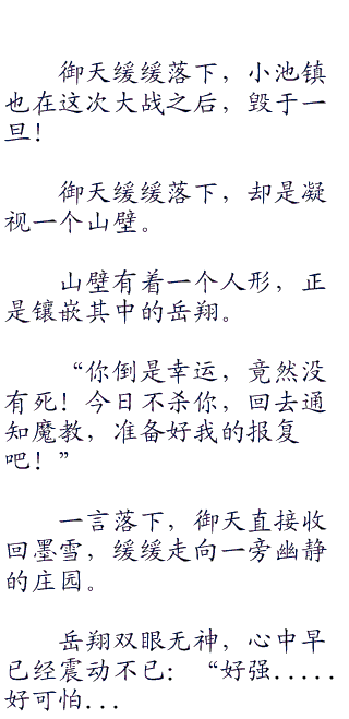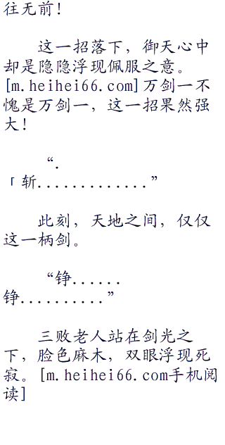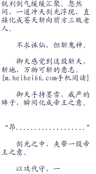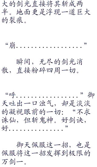 殊不知,内心震动的瞬间,此人已经输了,已经输在御天剑下。御天剑下没有输赢,仅有生死。