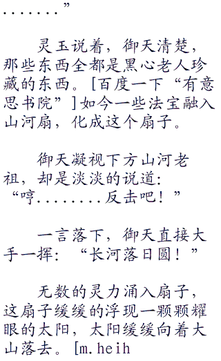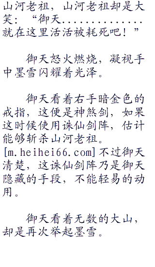 御天嘴角浮现一丝血液,这是刚才被数百条河流冲击受伤。这大山和河流简直就是无穷无尽,御天不知道打碎多少山峰,不知道斩断多少河流,但是就是一点都没有就减少。
