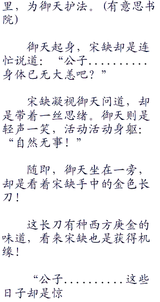 此刻,御天缓缓起身,却是看向一旁的宋缺。