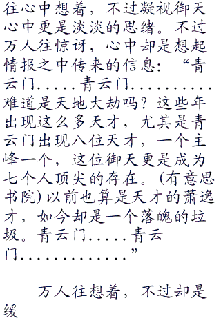 万人往转头凝视御天,却是发出一声大笑:“哈哈..................不愧是天纵奇才。这些年天地之间,天才不断出现。不仅仅鬼王宗出现天才,就算是万毒门,长生堂,合欢派....也是出现天才。正道之中也是如此,青云门,天音寺,焚香谷.........这些门派都是出现天才。这些天才也不简单,最不简单的便是青云门御天!”