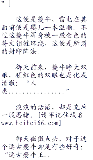 御天心中惊骇,不过却是淡淡的说道:“夔牛!”