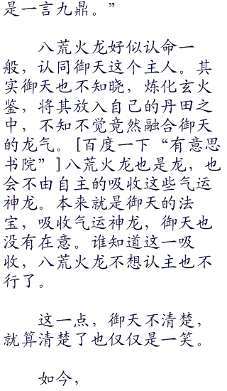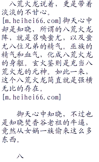 御天无言,不过八荒火龙却是转头凝视御天:“小子.....玄火鉴“七二三”被你炼化,你也是女娲一族吗?”