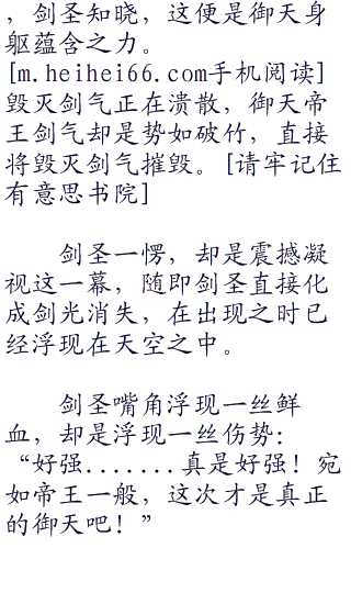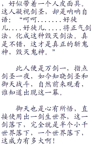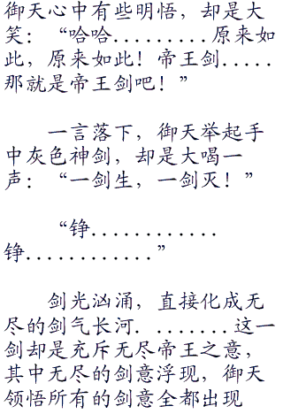 御天直接举剑刺向剑圣,所谓的毁灭之意如何,御天可不会在乎,御天乃是剑中帝王,毁灭之剑乃是御天臣子。
