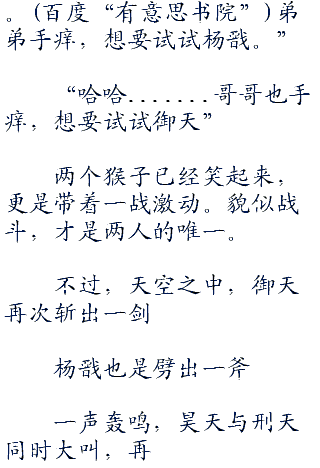 也许是理亏,御天没有爆发全部实力,不过就算如此,杨戬也是有些吃力。