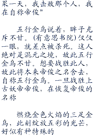 “呵呵......帝俊这个名称真是霸气。本来以为天地已经没有三足金乌,我自称帝俊,将三足金乌的光芒照耀诸天万界。却不曾想,上古帝俊竟然活着,活得好好的”