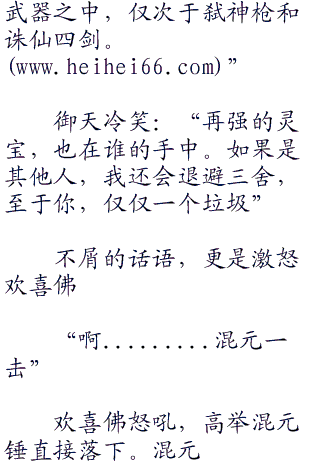 欢喜佛凝视御天,混元锤举起:“御天......不要逼我,这混元锤在所以先天灵宝之中,也是赫赫有名的存在。尤其是